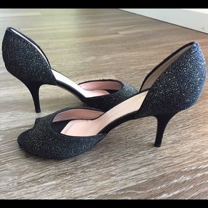 New without box, Kate Spade D'Orsay Pump in Black/Gold Glitter. Open toed heels, size 6.5. The heels are 3.5 inches tall. Perfect for a wedding or prom!