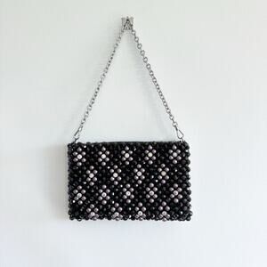 - Features: Beaded, zipper closure, lined, chain strap, detachable strap, inner pocket, logo, rectangle shape, lightweight, minimalist