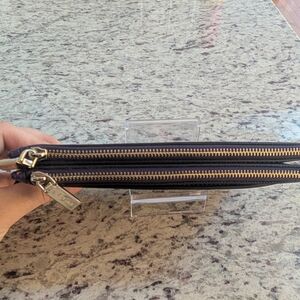Chic Kate Spade wristlet with a playful candy print. Features a detachable strap and 2 zip compartments. credit card slots and a front slip pocket.