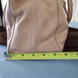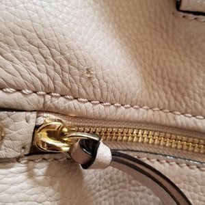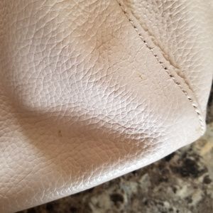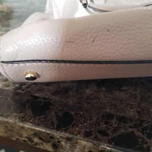 Beautiful Kate Spade purse! Large zipper areas on the outsides and an inner area that has small pockets. There are a few small marks on the purse that are shown in the last four photos. There is also a small mark that can be seen on the back of the bag in the 2nd photo