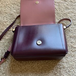 Worn for one season with only minor scratching on front plate. Can we worn crossbody or off the shoulder. It is a purple/maroon with a pink inside. Can be worn any season really! 9 x 7