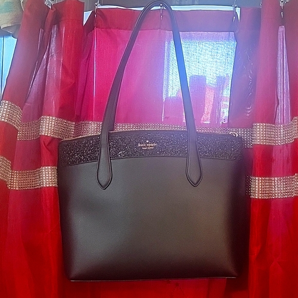 Kate Spade Purse , sorry don't know exact name. Part of the Tinsel collection. Used twice but not my style. No rips or stains , looks brand new inside and out as shown in pics. Laptop shown for size comparison. Selling purse only, no dust bag.