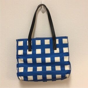 Kate Spade Purse Berry Street Elise Tote Bag Blue White Shoulder Gingham Nylon