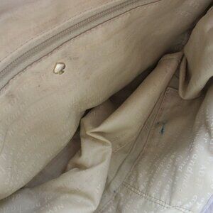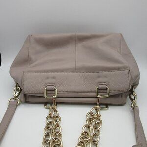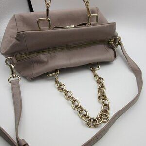 Kate Spade Purse Pebbled Leather Gray Beige Bow Shoulder Strap Chain Handles Bag