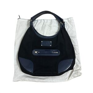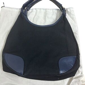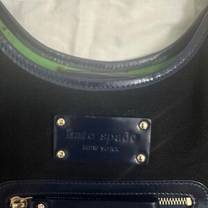 Kate Spade Purse Shoulder Bag Round Navy Blue Black Canvas Chic Minimalist