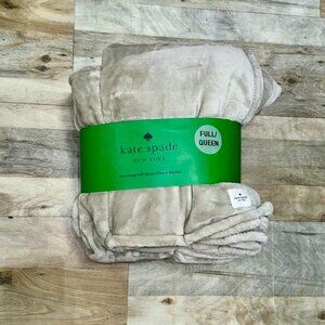 Kate Spade Queen Full Beige Taupe Grayish Fleece Blanket Comforter Throw Bedding