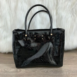 Kate Spade Quinn Embossed Ace Of Spades Tote Bag Black Patent Leather Satchel