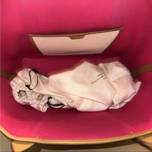 This stylish tote bag features a blend of cream, pink, and brown colors, perfect for any occasion. Its spacious design and elegant look make it a must-have accessory.