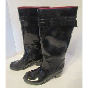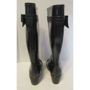 Kate Spade Rain Boots Randi Too Tall Black Rubber Heeled Bow Waterproof 8