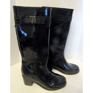 Kate Spade Randi Too Tall Black Rubber Rain Boots Heeled Bow Waterproof 8