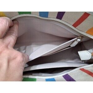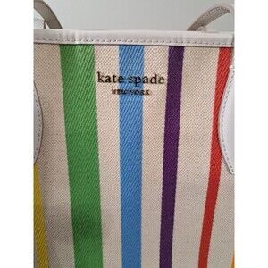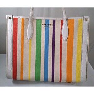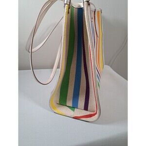 Kate Spade rainbow medium market tote, linen canvas & leather.