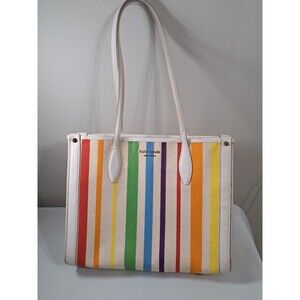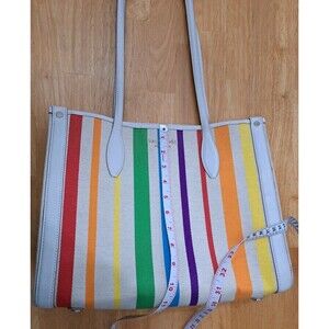Kate Spade Rainbow Medium Market Tote Linen Canvas & Leather