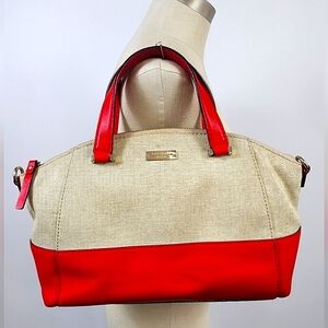 Kate Spade Red Beige Canvas Leather 2Way Crossbody Top Handle Satchel