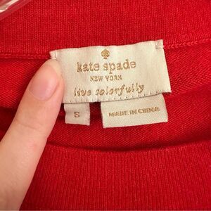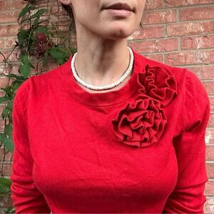 Kate Spade Red Floral Rosette Applique Sweater S Cashmere Blend Coquette Holiday