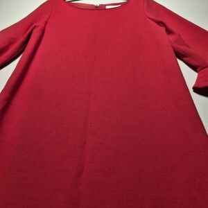 The Kate Spade Luna dress is a sophisticated and stylish option for a variety of occasions. The dress features a flattering boat neck, 3/4 flared sleeves with ruffle accents, and a knee-length hem. Made from a luxurious wool blend, this dress is perfect for weddings, parties, formal events, and even workwear or business settings. The bold red color and designer branding add a touch of elegance, making it a standout piece for any wardrobe. Price reflects any defects.