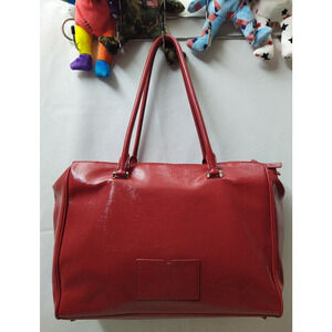 Kate Spade Red Patent Leather Double Handle Zipper Closure Satchel Shoulder Bag