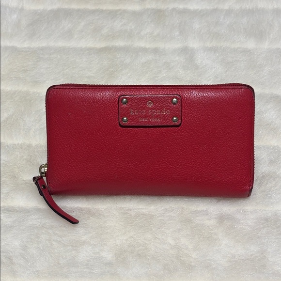 🔥🔥Kate Spade Red Pebbled Leather Zip Around Wallet with Logo Plate🔥🔥