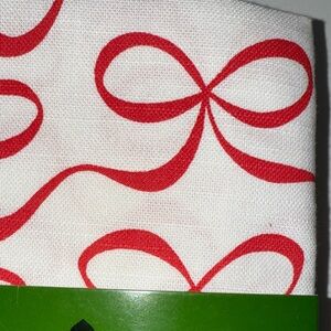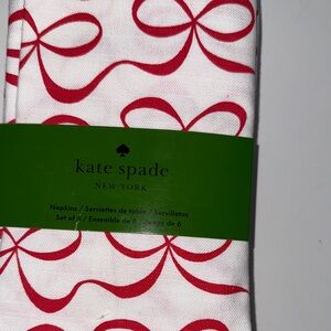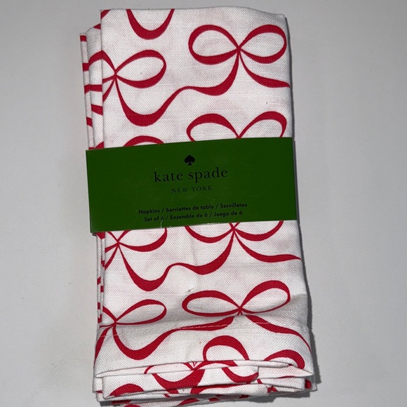 Set of 6 Kate Spade napkins. Chic napkins featuring a red ribbon pattern. Perfect for stylish dining.