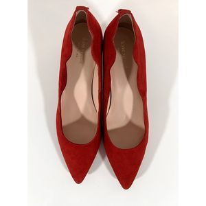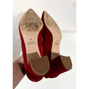 Kate Spade Red Suede Mindie Scalloped Block Heel Pumps Women's Size 8M