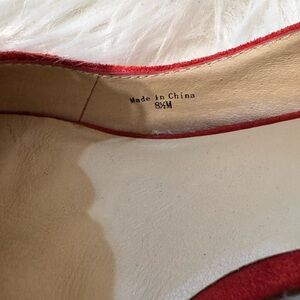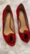 Chic red suede heels with floral detail. Peep-toe design for a stylish look. Fairy used and in great condition! Open to offers