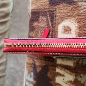 Elegant red wallet. Sleek design. Perfect for essentials.