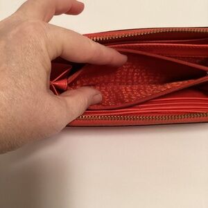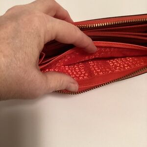 Charming red wallet. Features a playful cupcake design. Perfect for adding a fun touch to your style.