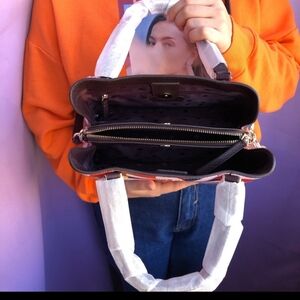 Stylish satchel with bold leaf design. Features red, pink, and brown hues. Ideal for a chic look. See photos for measurements. Never used purse. I bought it from a seller on Poshmark, but the purse ended up being too small for my liking.