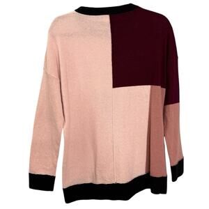Kate Spade Revolve Size M Colorblock Crewneck Sweater Pink Maroon Wool Cashmere Twee