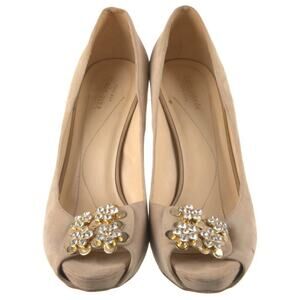 Kate Spade Rhinestone Gold Floral Embellished Begin Suede Stiletto Heel US 10.5