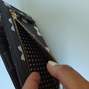 Perfect condition. Has cute bowtie patter on outside zippered coin compartment.