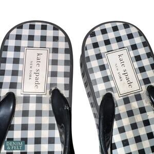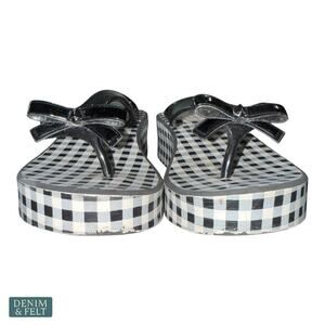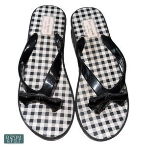 Kate Spade Rina Wedge Flip Flops Black Gingham Bow Sandals Size 7B Women’s