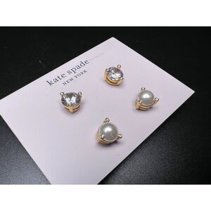 White faux pearl earrings with tiny crystal accents. About 3/8" in diameter.