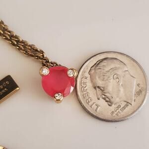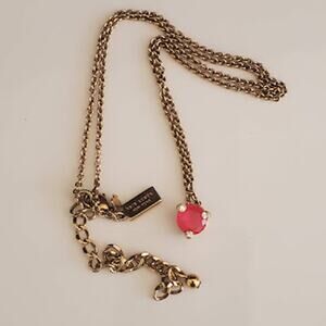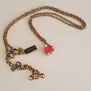 Kate Spade Rise and Shine mini pendant is watermelon with small crystal accents. Gold plated. Chain adjusts from 16 to 19 inches and shows some minor signs of wear. Overall good condition.