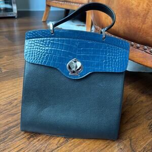 Kate Spade Romy Croc-Embossed Colorblock Backpack Blue Womens Travel