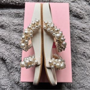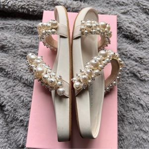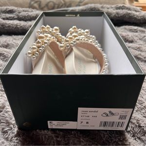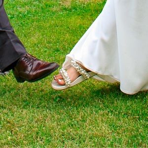 The most gorgeous, and comfy, wedding sandals! Wore them for my ceremony and reception with no issue. Beautiful pearls on the straps to add a statement to any wedding day, or just a fun sandal!