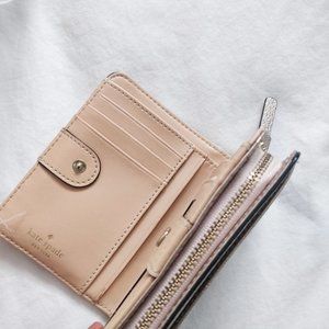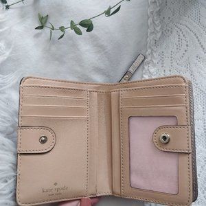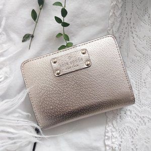 Kate spade rose gold wallet. Card slots and three slip pockets and an ID slot. Some minor signs of wear (see images)