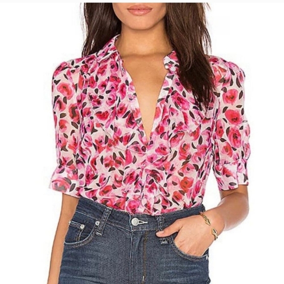 As seen on Reese Witherspoon in Big Little Lies, this beautiful silk Kate Spade Live Colorfully Roses blouse in size 2 is in near perfect condition.