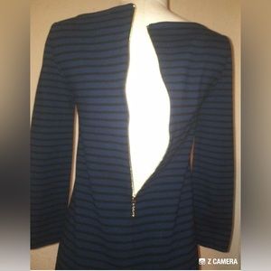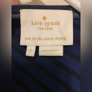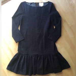 Excellent condition- Long-sleeved, black and blue striped Kate Spade dress. Size 12P as labeled in photo.