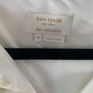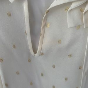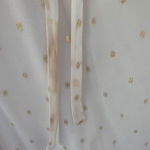 Silk Kate Spade size 10 tank top - cream colored with gold metallic polka dots. Some discoloration on the neckline, armpits, and ties. Perfect for under a suit jacket.