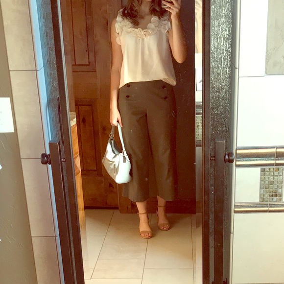 Ivory sleeveless ruffled top! Ruffles go all the way around which is so nice, because usually most brands cut them off. Ivory color, wear it tucked in or let out. NWOT