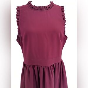 Kate Spade Ruffle Trim Fit & Flare Dress Deep Cherry Red Size 14 Career Preppy