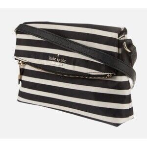 Chic, compact, and versatile this Kate Spade New York mini crossbody is your go-to everyday bag. With its durable striped nylon exterior and signature crosshatched leather trim, it blends classic style with on-the-go practicality.
