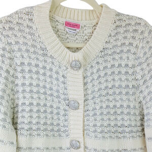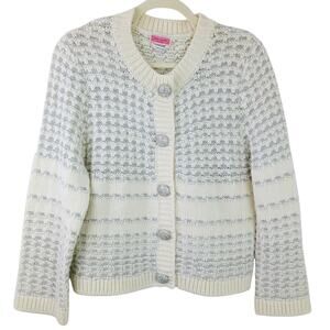 Kate Spade SZ L Jewel Button Textured Cream Silver Wool Alpaca Cardigan $328