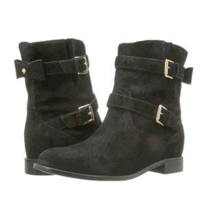 Kate Spade Sabina Black Suede Buckle & Bow Boots, EUC. No visible wear.