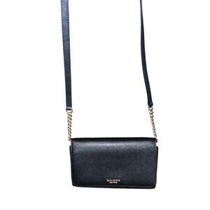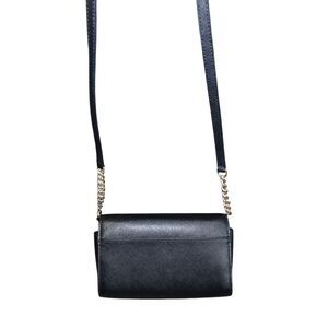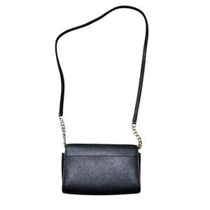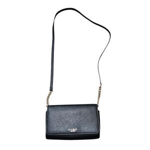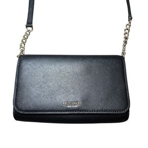 GORGEOUS Kate Spade Saffiano Leather Crossbody bag in Black color with gold chain accents. This beautiful bag has a magnetic snap closure that opens up to an open compartment with several slip pockets, and a zippered compartment. The exterior of the bag has a slip pocket in the back. Perfect for a day of shopping or travel!