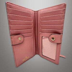 Kate Spade Saffiano Leather Wallet Multiple Card Holder Back Zippered Rose Pink