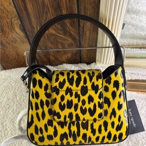 Kate Spade Sam Icon Leather HOBO Vibrant Leopard Yellow Black Animal Print Bag