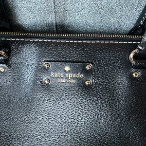 Only used once - mint condition.Black pebbled 100% leather XL Tote. 4 interior pockets (3 that zip closed and middle section has metal snap closure). Sides also include metal snap closures. Dimensions: 15.5" width, 9.5" height without handle and 17" height with handle. Comes with dust bag. No stains on inner lining.