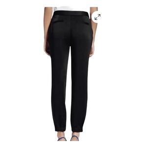 Kate Spade Satin Cinched Bottom Jogger Dress Pants in Black Flowy Material. Slouchy meets cinched in tapered, satin-backed crepe pants sculpted by polished front pleats. Increase your styling options by rocking the elasticized hems at mid-shin to create a cool, cropped look.