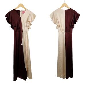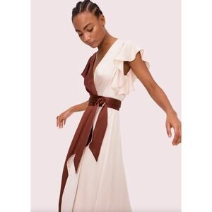 Kate Spade Satin Colorblock Wrap Midi Flutter Sleeve Party Dress Size 2